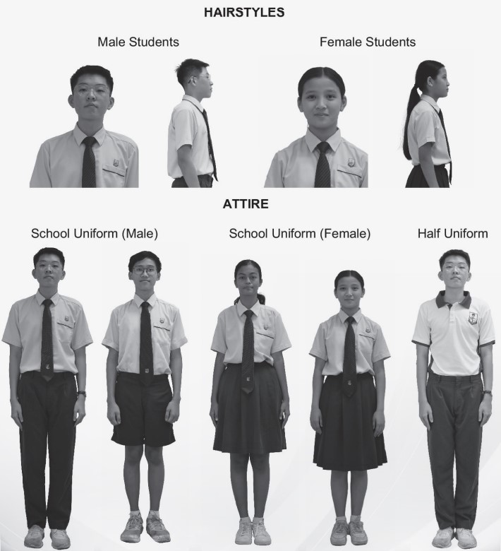 Every Wednesday, students are to wear the full school uniform, i.e. shirt/blouse and pants/shorts/skirt. Students are allowed to wear half uniform on other days of the week. Half uniform comprises the Polo T-shirt and school pants/shorts/skirt.